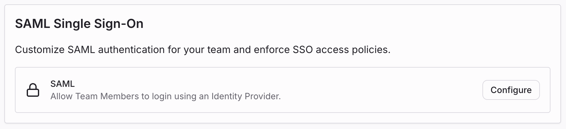Once enabled, team members can authenticate with your configured identity provider, and new users signing in with SAML will be added to your team.